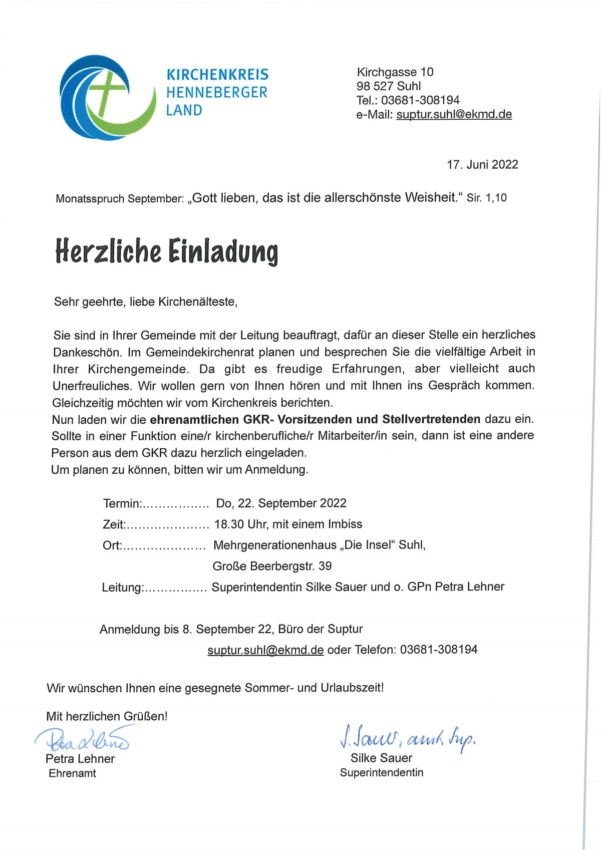 Sie sind in Ihrer Gemeinde mit der Leitung beauftragt, dafür an dieser Stelle ein herzliches Dankeschön. Im Gemeindekirchenrat planen und besprechen Sie die vielfältige Arbeit in Ihrer Kirchengemeinde. Da gibt es freudige Erfahrungen, aber vielleicht auch Unerfreuliches. Wir wollen gern von Ihnen hören und mit Ihnen ins Gespräch kommen. Gleichzeitig möchten wir vom Kirchenkreis berichten. Nun laden wir die ehrenamtlichen GKR-Vorsitzenden und Stellvertretenden dazu ein. Sollte in einer Funktion eine/r kirchenberufliche/r Mitarbeiter/in sein, dann ist eine andere Person aus dem GKR dazu herzlich eingeladen. Um planen zu können, bitten wir um Anmeldung.