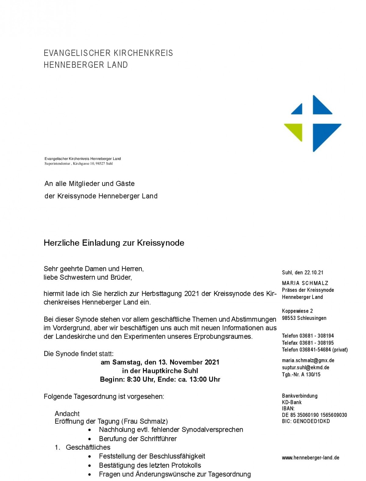 Einladung zur Kreissynode am 13.November 2021 - Achtung!!! Die Kreissynode wird nun online stattfinden!!!