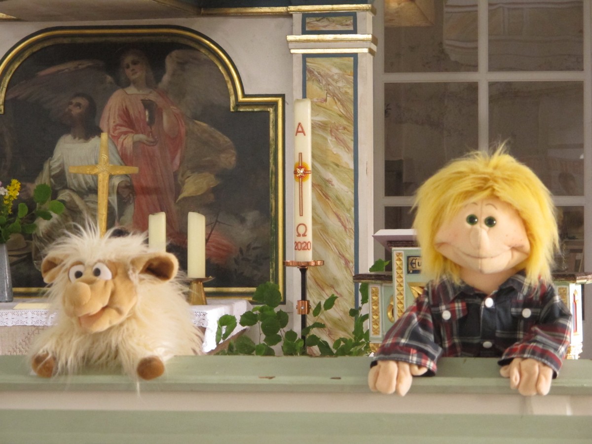 Johannes und Wolli leben schon seit 2011 in Viernau. Damals kamen sie nach einem Zirkusprojekt in die Gemeinde. Seitdem gestalten sie regelmäßig Familiengottesdienste mit. (Da haben nicht nur die Kinder ihren Spaß mit den zwei lustigen überdimensionalen Handpuppen, sondern auch die großen Leute lieben die Begegnungen mit den beiden.) Seit etwa drei Jahren besuchen Johannes und Wolli im Viernauer Kindergarten die große Gruppe, um ihnen zu erzählen, wer Jesus ist. Natürlich ist die Viernauer Pfarrerin Silke Sauer immer mit dabei, wo die beiden auftauchen. Johannes ist ein aufgeweckter Junge, der die Welt entdecken möchte und dabei immer auch auf der Suche nach Neuigkeiten über Gott ist und schon ganz viel über Gott und Jesus in Erfahrung bringen konnte. Wolli, ein lustiges Schäfchen, das schrecklich schielt, ist der beste Freund von Johannes und immer in seiner Nähe und löchert ihn mit seinen vielen Fragen. 2017 lernten die beiden dann Elisabeth kennen, die sie Lissy nennen, seitdem sie befreundet sind. Manchmal besucht Lissy die beiden. Ganz gescheit hat sie dann die richtigen Antworten auf die Fragen, auf die auch Johannes keine Antwort mehr weiß, und sie kennt sich erstaunlich gut mit moderner Technik aus.