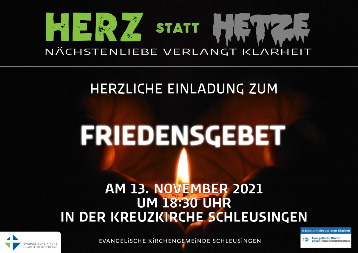 Einladung zum Friedensgebet am 13. November 2021 in Schleusingen