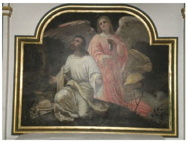 ie Darstellung zeigt Jesus im Garten Gethsemane mit einem Engel. Es wirkt, als hätte der Engel seine Schwinge schützend über Jesus ausgebreitet. Doch so ist es nicht: Die Schwinge des Engels verdeckt Jesu Blick nach oben. Und der Engel hat einen Kelch in den Händen. Es ist der Moment, in dem Jesus nach dem Mahl mit seinen Jüngern hinausgeht in den Garten Gethsemane, um kurz vor seinem Leiden zu beten und Gott zu bitten: „Abba, mein Vater, alles ist dir möglich; nimm diesen Kelch von mir; doch nicht, was ich will, sondern was du willst!“ (Mk 14,36) Mancher mag in diesen Zeiten auch das Gefühl haben: Wo bist du, Gott? Der Blick zu Gott ist mir verdunkelt. Und wie bitter der Kelch sein wird, der da auf mich zukommt, ist noch gar nicht absehbar. Die Hände von Jesus, mit denen er so oft anderen geholfen hat, sind ausgestreckt – was wird ihm Gott hineinlegen? Der Kelch des Leidens ging nicht an ihm vorüber. Er hat mit Gott sehr gerungen, aber schließlich im Vertrauen auf Gott das Leiden angenommen. Dieses Altarbild sagt mir immer wieder: Unsere Wünsche und Pläne müssen nicht Gottes Wege für uns sein. Engel sind keine Beschützer, die uns vor allem Schweren und allem Leiden bewahren. Von den Jüngern ist auf diesem Bild nichts zu sehen. Dabei hatte Jesus drei von den zwölf Jüngern mitgenommen und sie gebeten, wach zu bleiben und mit ihm zu beten. Doch sie sind immer wieder eingeschlafen. Gerade in dieser schweren Stunde, in der Jesus mit Gott ringt, sind ihm die Jünger keine Unterstützung. Jesus kennt also die schweren Stunden, in denen Menschen mit Gott ringen und dabei oft sehr einsam sind. Dennoch hat Jesus nach langem, inneren Kampf im Gebet die Kraft gefunden, sich ganz Gottes Willen anzuvertrauen und dem Leiden aufrecht entgegenzugehen. Am Gründonnerstag feiert Jesus nicht nur das Abendmahl mit seinen Jüngern, sondern er erlebt auch Enttäuschung durch ihm nahestehende Menschen und schwere Anfechtung im Glauben. Jesus kennt gelingendes Miteinander genauso wie bittere Enttäuschung, gute Gemeinschaft genauso wie tiefe Einsamkeit. Deshalb versteht er uns auch da, wo wir mit Gott ringen, wo unsere Fragen größer sind als unsere Antworten – auch da ist er uns nah. An ihm sehen wir aber, dass er sich auch in schweren Zeiten nicht von Gott abgewandt hat, sondern weiter auf Gott vertraute, Gott seine Fragen und seine Ängste hinhielt. So konnte Gott ihm Kraft geben.